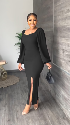 Fashionable Dress Turndown Collar Seven Split Sleeves Bodycon Office Dress Without Belt