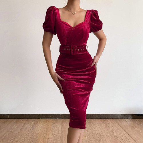 Off Shoulder Velvet Gown Dress Sexy Asymmetric Ruffle Dress