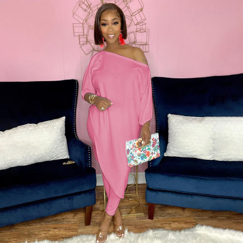 Women'S Autumn Loose Solid Irregular Long Shirt And Tight Pants Set