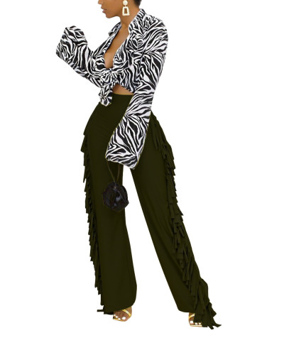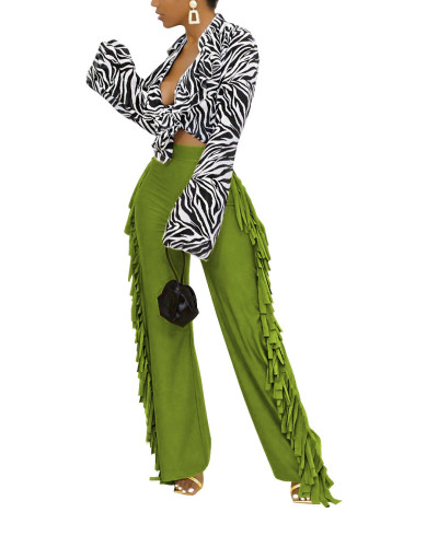 Autumn and winter women's cute print striped fringed trousers