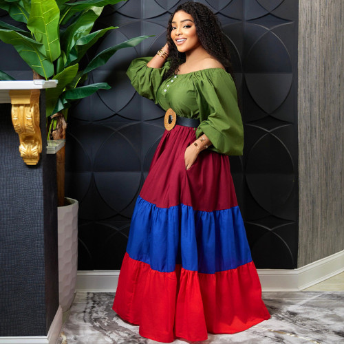 Plus Size Women Summer African Contrast Dress