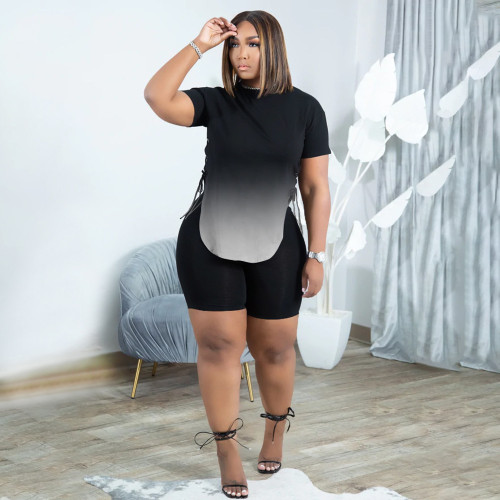 Women Summer Sexy Lace-Up Top And Mesh Perspective Shorts Casual Two Piece Set