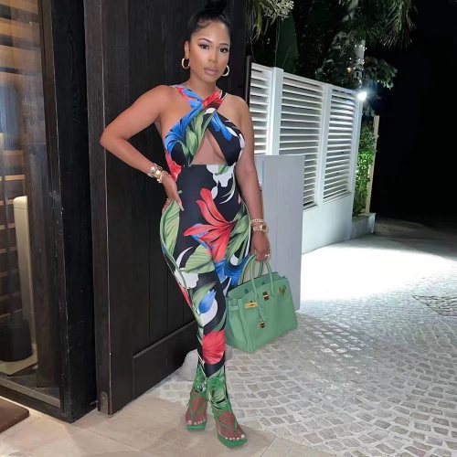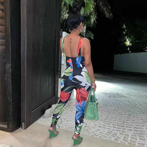 women's fashion suspender print jumpsuit